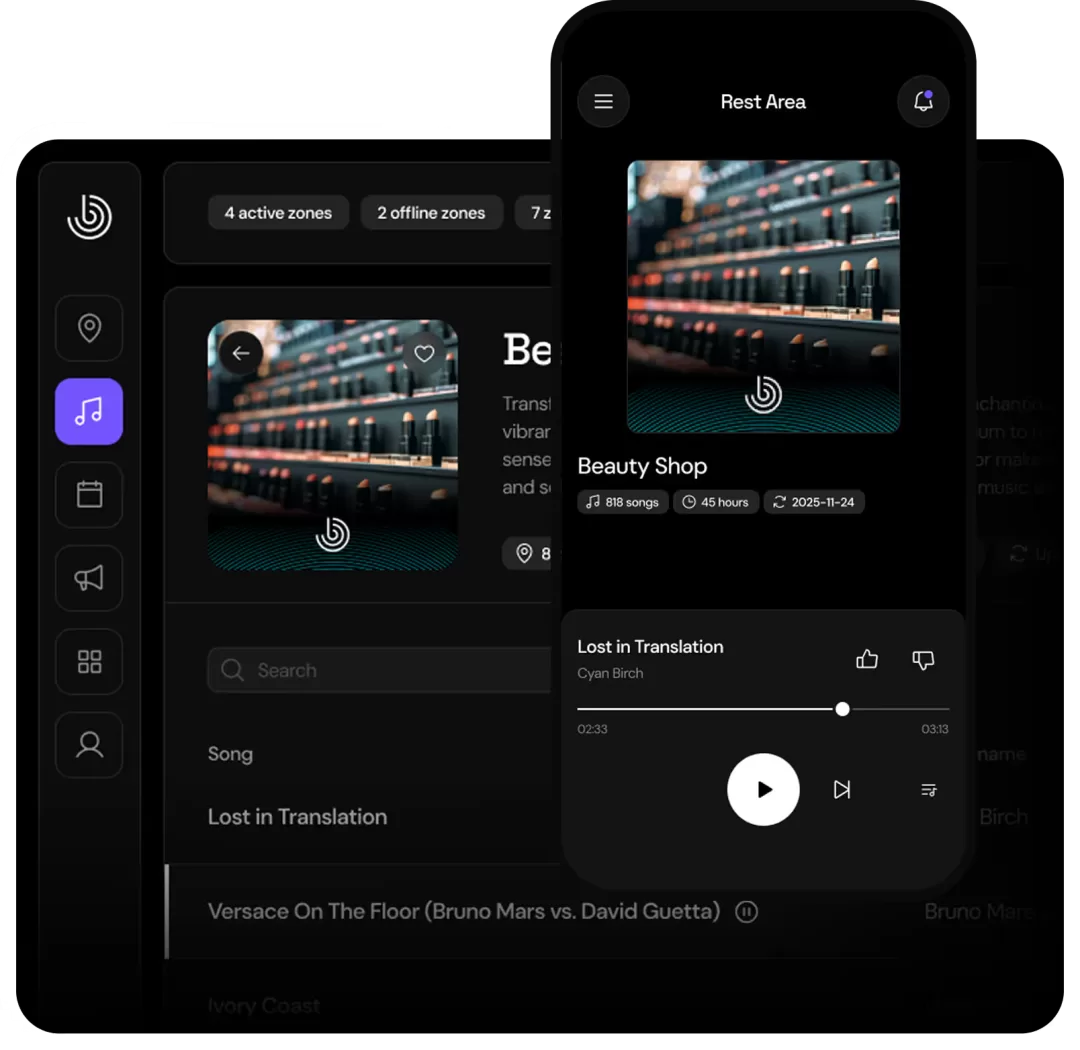 Desde una única plataforma, puedes controlar la música y las campañas publicitarias en todas las ubicaciones, con total visibilidad y sin ningún tipo de fricción.
