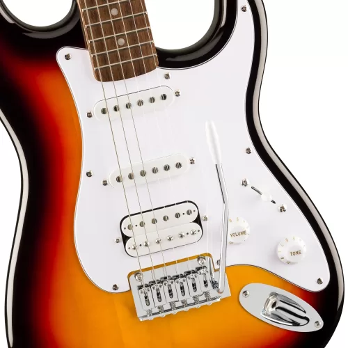 Calibradas internamente en Fender, la pastilla mástil y el medio de bobino simple de Squier produce un tono nítido y articulado que complementa el tono potente de la pastilla de