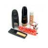 Las características incluyen tomas de entrada y salida, pantalla LED, medidor de VU iluminado, verificación de batería y entrada de CA de 9v.