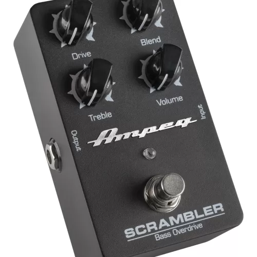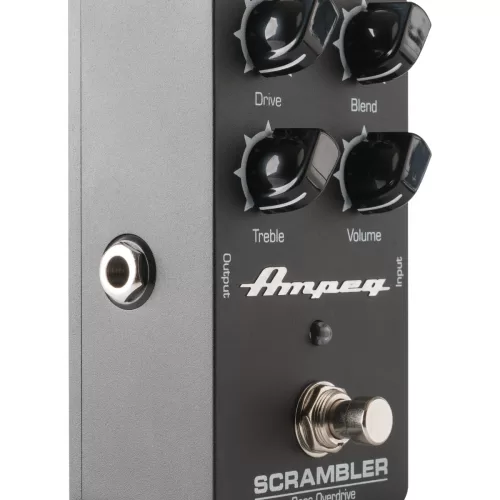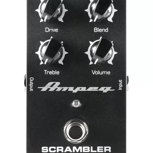 Pedal overdive para bajo Scrambler. El mismo circuito de overdrive / fuzz que otorga a los amplificacores Ampeg su carácter, disponible en pedal. Controles de Drive , Blend (para mezclar con la señal original), tono y volumen. Funciona con pila o alimentador de 9V (no incluida). True bypass.