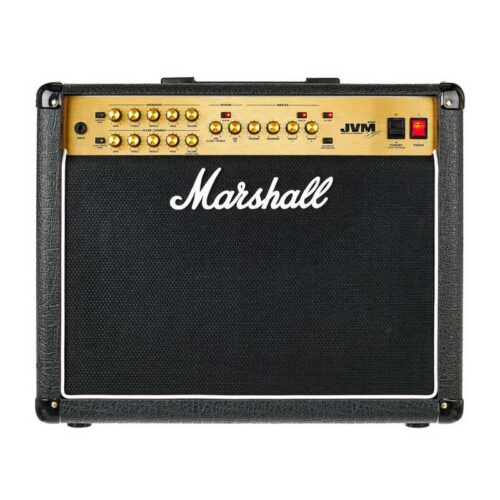 El amplificador Marshall JVM215C todo tubo de 1 x 12 “y 50 vatios le ofrece la gama completa de tonos Marshall, desde una limpieza nítida hasta un rugido fundido. El JVM215C de 2 canales le ofrece seis modos, que cubren dos canales independientes con tres etapas de ganancia, cada uno con su propia memoria conmutable por pedal. Es una gran característica para conmutación ultra flexible en el escenario (a través de la unidad de conmutador de pedal programable y dedicada incluida), además de que el altavoz Marshall G-12 Vintage proporciona un tono excelente. Dos bucles de efectos, reverberación para cada canal, un altavoz -Salida de línea XLR emulada y dos volúmenes maestros conmutables por pedal también adornan el JVM215C.