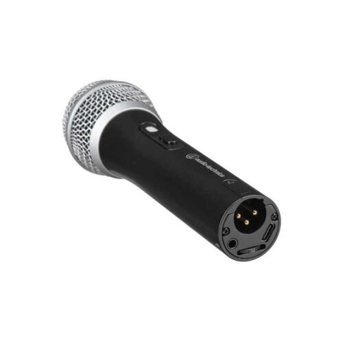 Este robusto micrófono de mano ofrece dos salidas: una salida USB que se conecta a su computadora u otro dispositivo de grabación digital, y una salida XLR que se conecta a la entrada para micrófono convencional de los sistemas de sonido para uso en actuaciones en vivo.
