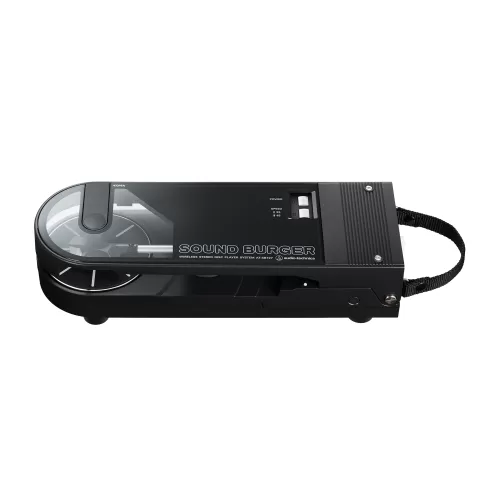 Sound Burger ofrece reproducción de sonido de alta calidad con un sistema de transmisión por correa que reproduce discos de 33-1/3 y 45 RPM. Para lograr portabilidad y estabilidad, el brazo fonocaptor emplea un sistema de equilibrio dinámico en el que la presión de la aguja se aplica a través de un resorte. Además, un motor de CC de alta precisión mantiene una rotación estable. Este exclusivo giradiscos cuenta con un plato de aleación de aluminio fundido a presión con diseño de amortiguación y una aguja de diamante reemplazable. La aguja original puede sustituirse por la ATN3600LC (se venden por separado). Si desea mejorar aún más su experiencia de audio, también puede adquirir la aguja elíptica ATN3600LE. Sound Burger también viene con un cable de audio para aquellos que prefieren una experiencia auditiva analógica con cable.