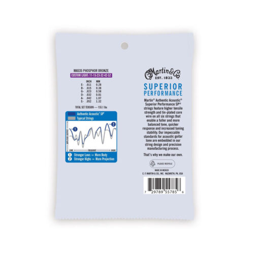 Las cuerdas Martin® Authentic Acoustic® Superior Performance SP® cuentan con una mayor resistencia a la tracción y un alambre central estañado en las seis cuerdas que permiten un tono más completo y equilibrado, una respuesta más rápida y una mayor estabilidad de afinación.Nuestros estándares impecables para el tono de la guitarra acústica están integrados en nuestro diseño de cuerdas y proceso de fabricación de precisión.Es por eso que hacemos los nuestros.