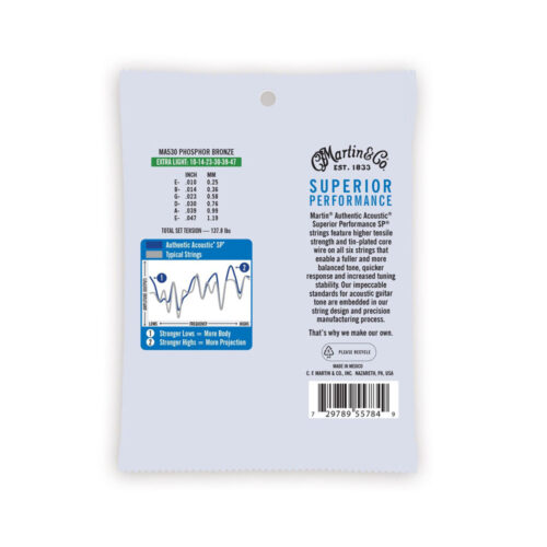 Las cuerdas Martin® Authentic Acoustic® Superior Performance SP® cuentan con una mayor resistencia a la tracción y un alambre central estañado en las seis cuerdas que permiten un tono más completo y equilibrado, una respuesta más rápida y una mayor estabilidad de afinación.Nuestros estándares impecables para el tono de la guitarra acústica están integrados en nuestro diseño de cuerdas y proceso de fabricación de precisión.Es por eso que hacemos los nuestros.