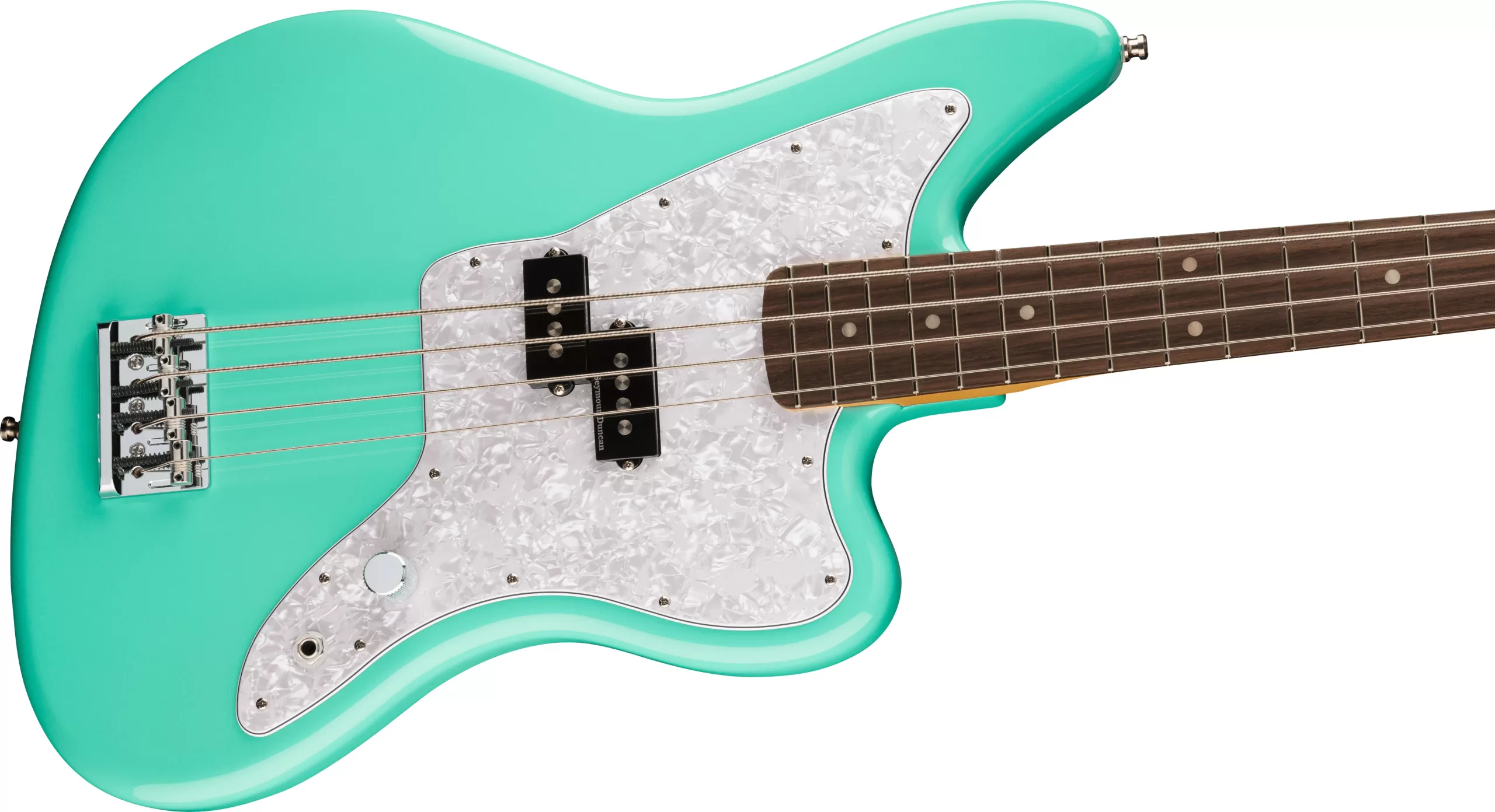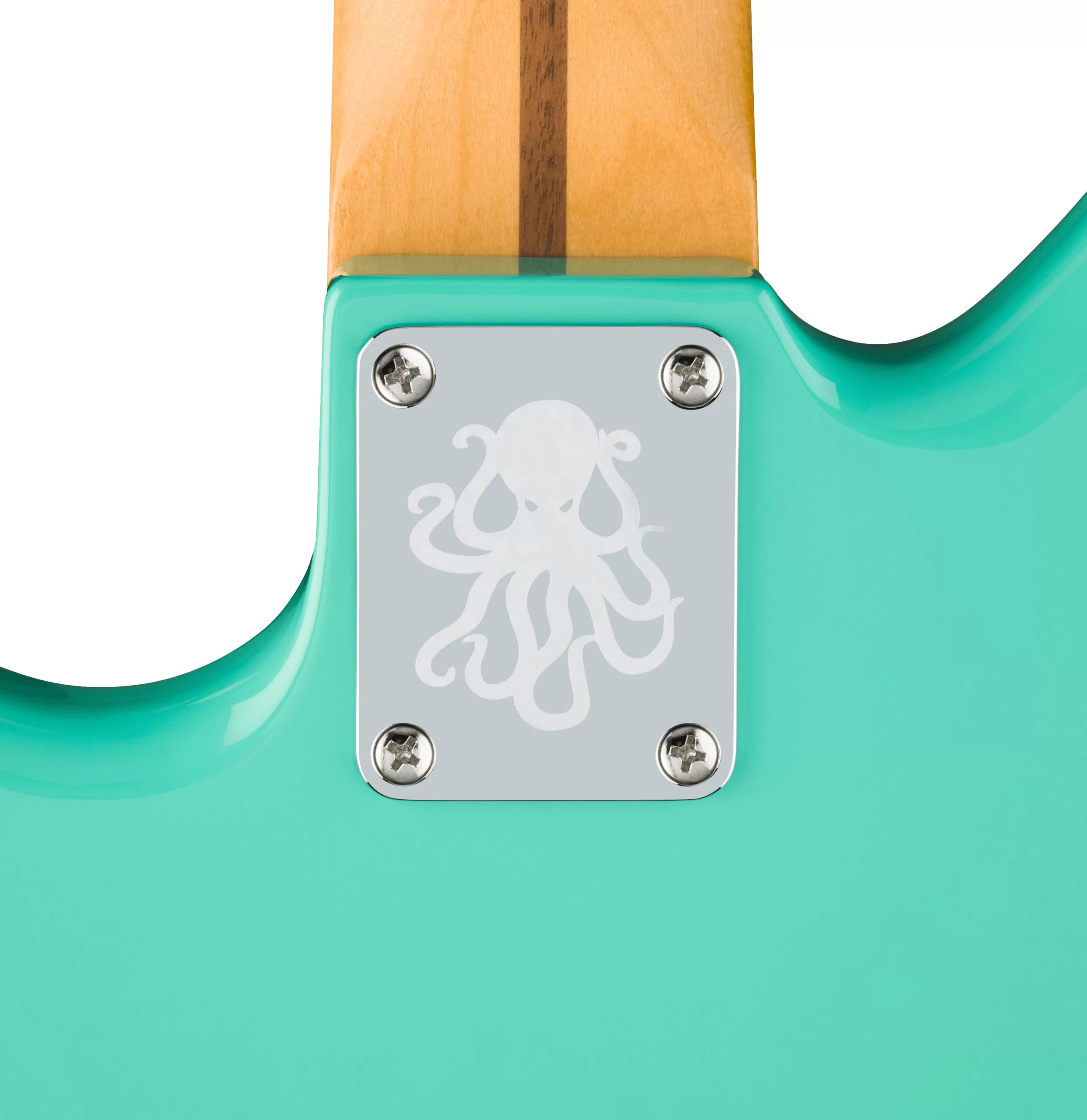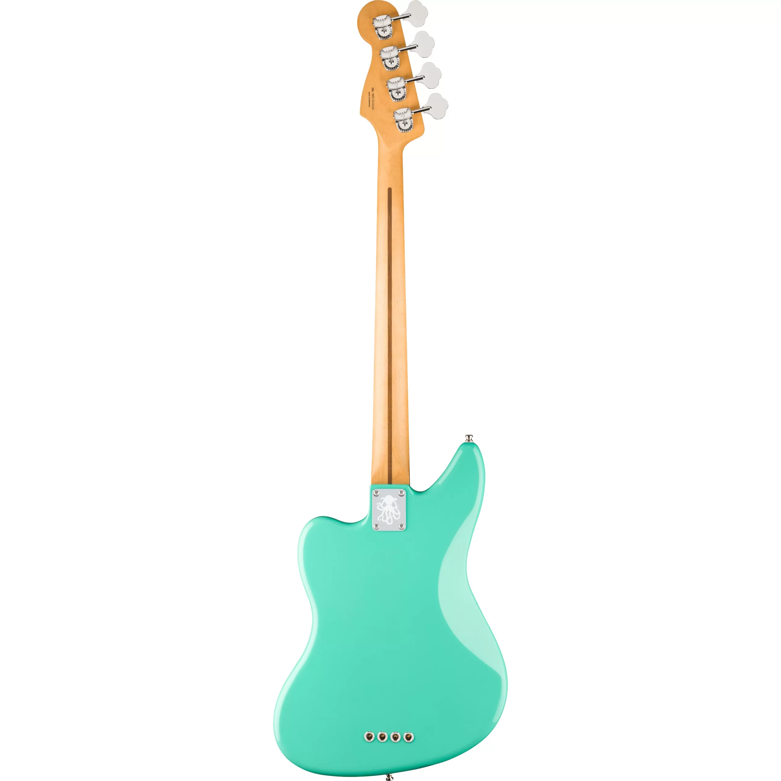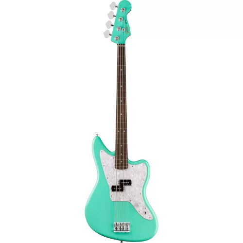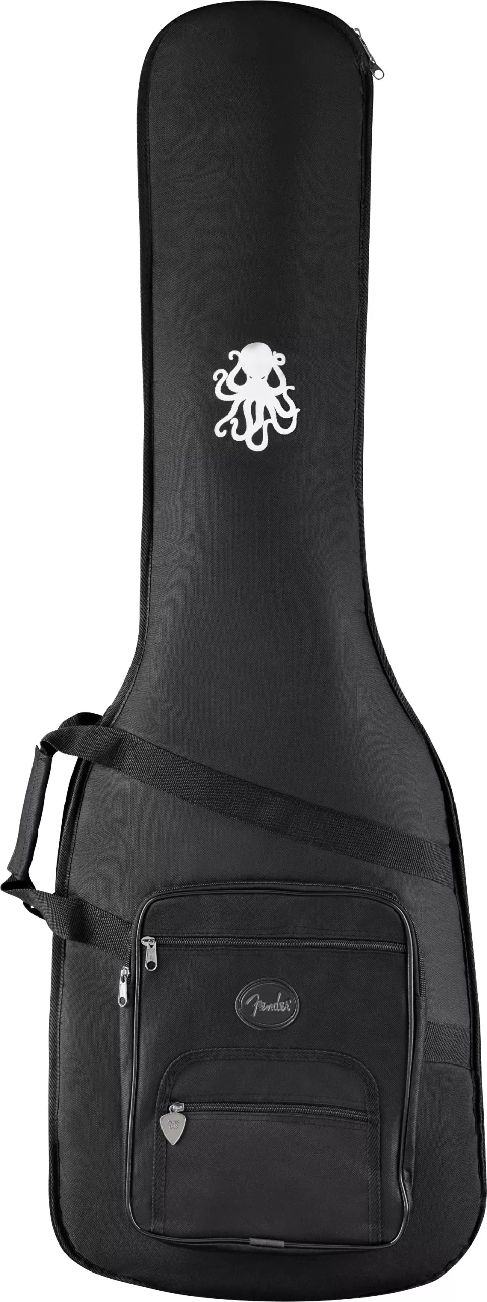 Presentamos el Fender® Limited Edition Mark Hoppus Jaguar® Bass: este lanzamiento de Edición Limitada se acabará antes de que parpadees, así que hazte con el tuyo hoy mismo y hazte con el modelo exacto que Mark Hoppus toca actualmente en el escenario con Blink-182. Para empezar, obtienes un cuerpo de Jaguar® de aliso sólido como una roca y completamente curvilíneo. Agregue a eso un mástil de arce con un perfil “C” personalizado, un hermoso diapasón de palisandro y elegantes puntos de perlas blancas, rematado con un juego de afinadores ligeros de estilo vintage. El golpeador perlado blanco de 4 capas está equipado con pastillas Seymour Duncan® SPB3 Quarter Pound™ P Bass® de bobina dividida montadas a medida en posiciones invertidas. Para un tono estelar y una entonación sólida como una roca, este bajo Jaguar cuenta con un puente HiMass™ Vintage. La placa de cuello personalizada presenta el logotipo del pulpo “Hi My Name is Mark” de Mark, al igual que la bolsa de lujo incluida.
