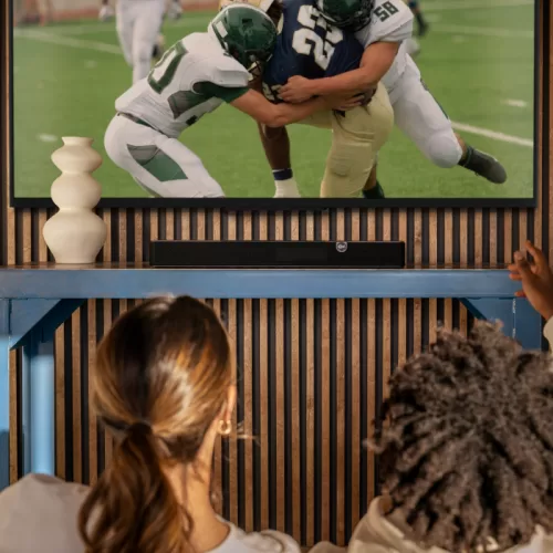 Cuenta con dos transductores de aluminio de 2,25 pulgadas y dos subwoofers integrados de 4 pulgadas, ofreciendo graves profundos sin necesidad de un subwoofer externo. Además, gracias a la tecnología Dolby Atmos virtual, el sistema crea un campo de sonido tridimensional que coloca cada detalle de audio a tu alrededor, generando una experiencia inmersiva en cada sesión de entretenimiento.