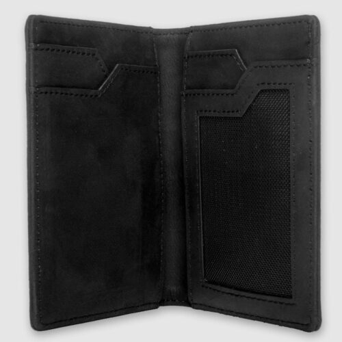 Sección interna de doble pliegue bloqueada por escáner RFID Cinta de pila de tarjetas múltiple extraíble magnética Tres bolsillos inferiores para tarjetas.