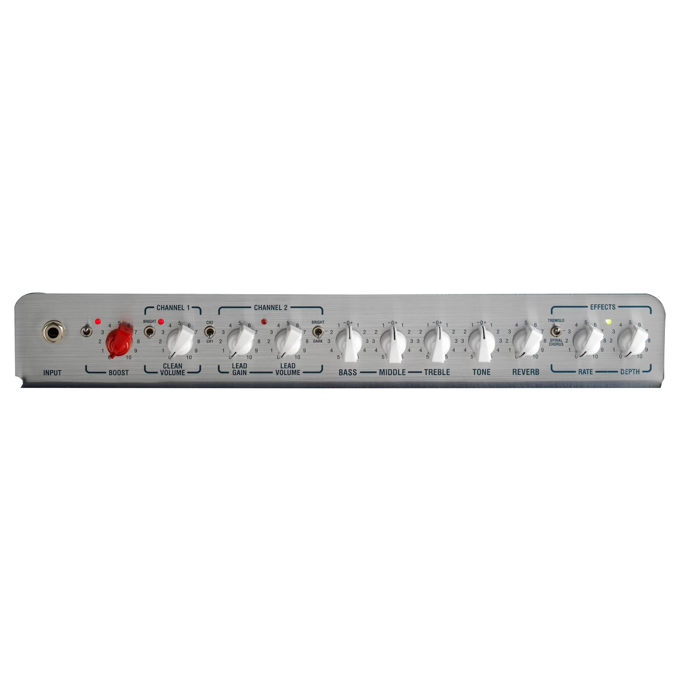 - Controles: Pre-Boost, Volumen limpio, Interruptor de brillo limpio, Cambio de canal, Ganancia de unidad, Volumen de unidad, Carácter de tono de unidad (normal, brillante, oscuro), Graves, Medios, Agudos, Reverberación, Trémolo o Interruptor de coro, Velocidad, Profundidad.