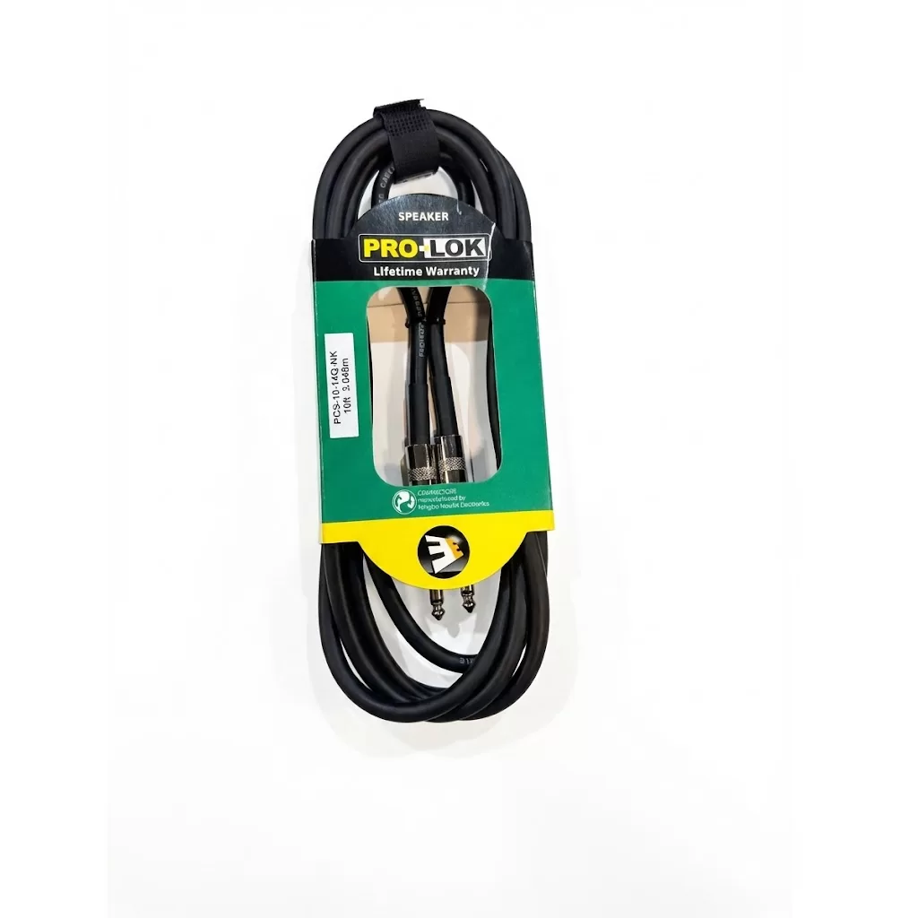 Conexión de alto rendimiento para tu equipo de sonido. El cable de altavoz Pro-Lok PCS-10-14Q-NK está diseñado para músicos y técnicos que no comprometen la integridad de su audio. Con una longitud de 3 metros, es la solución perfecta para conectar cabezales a pantallas o sistemas de PA pasivos en escenarios y estudios de grabación.