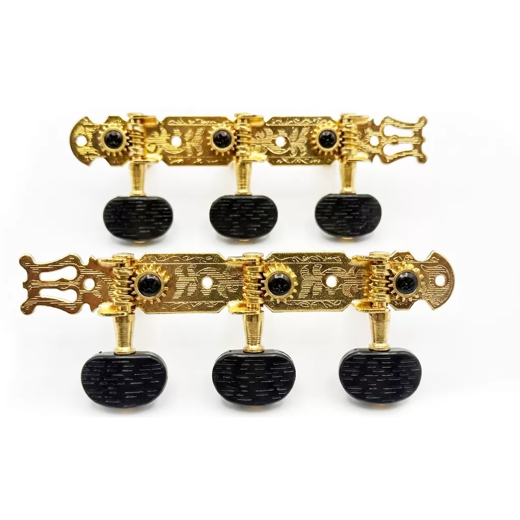 Este juego de clavijeros combina un diseño tradicional con una construcción robusta en acabado níquel/cromado, ideal para restauraciones o mejoras de guitarras clásicas y flamencas.