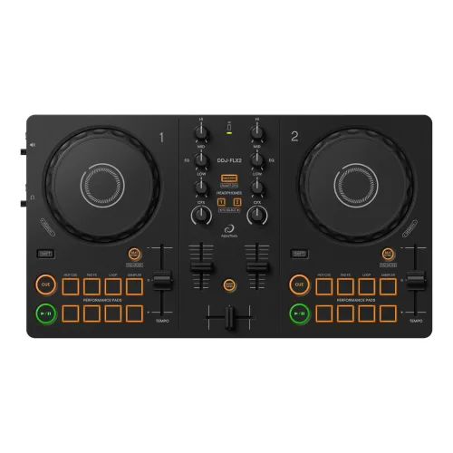 El DDJ-FLX2 es nuestro controlador DJ más liviano y compacto. Funciona con alimentación por bus USB, por lo que no necesitas una fuente de alimentación externa cuando lo conectas a un PC/Mac o un dispositivo móvil* a través de USB tipo C. Puedes comenzar a pinchar fácilmente reproduciendo música a través de los altavoces integrados de tu PC/Mac/dispositivo móvil. O, si conectas los altavoces a los terminales de salida de audio del DDJ-FLX2, puedes organizar una fiesta fenomenal con amigos.