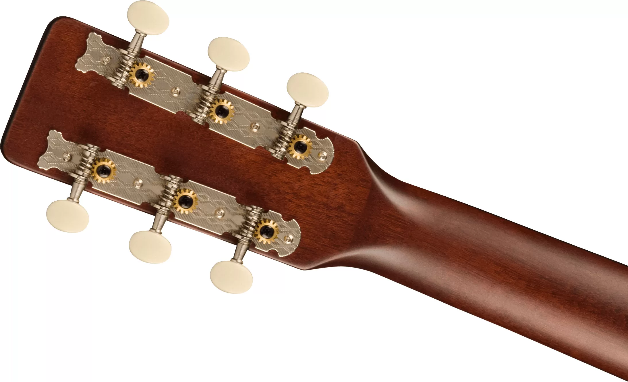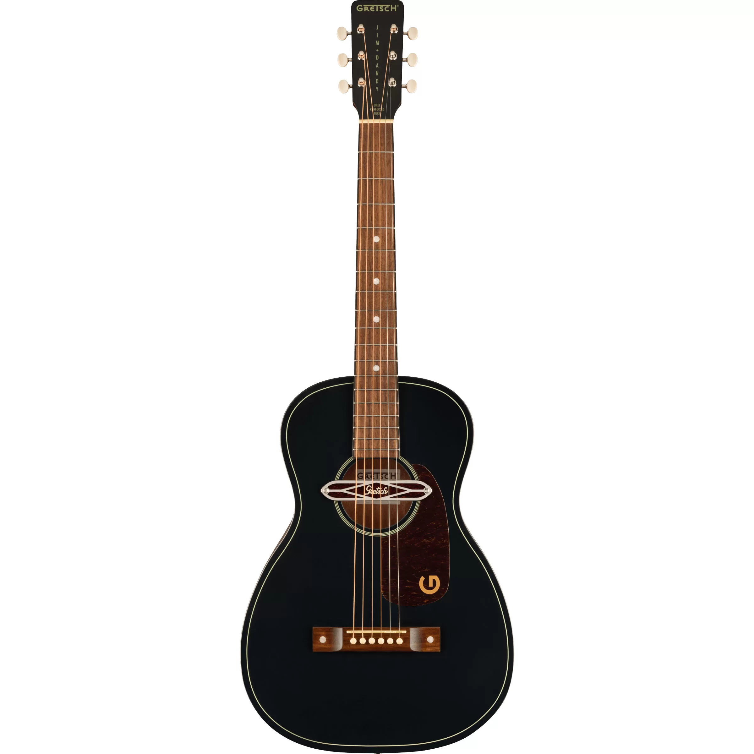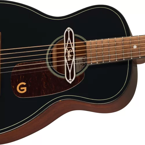 El cuerpo con refuerzo en X está confeccionado con maderas tonales laminadas ligeras seleccionadas para un equilibrio óptimo entre el tono vintage amaderado y la durabilidad confiable, mientras que el mástil en forma de “C” presenta una sensación acogedora para horas de inspiración antigua. La pastilla de boca magnética Gretsch Deltoluxe integrada produce un tono acústico electrificado versátil, lo que proporciona una utilidad adicional para las actuaciones en directo, la grabación y los pedales de efectos. Los detalles correctos de la época, como un puente con clavijas de estilo vintage, un golpeador gráfico en “G”, un filete de rayas pintadas, clavijeros de engranaje abierto 3 en una placa y unas incrustaciones de diapasón de puntos de gran tamaño se combinan para crear una personalidad nostálgica destinada a cualquier barnburner o jamboree.