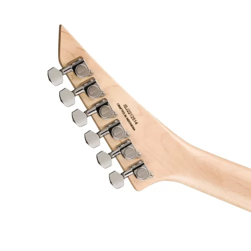 La DK3XR M HSS presenta un cuerpo de nyatoh con un talón esculpido en forma de trituradora para un acceso rápido a los trastes superiores y un mástil de arce atornillado con acabado satinado en la parte posterior para reducir la fatiga al tocar, así como una junta biselada y refuerzo de grafito para la estabilidad frente a los cambios climáticos y las presiones medioambientales. Con bordes redondeados, 24 trastes jumbo e incrustaciones de aleta de tiburón negra invertida, el diapasón de arce con radio compuesto de 12″-16″ (30,48 – 40,64 cm) es la plataforma ideal para acordes heavys y solos rápidos y contundentes.