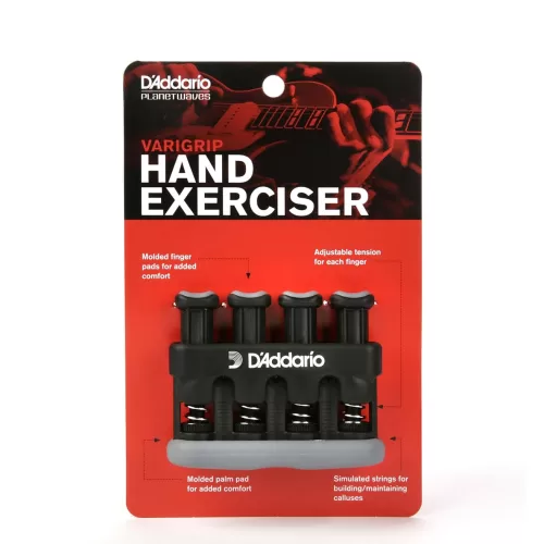 Diseñado para desarrollar y mantener la fuerza y destreza de tus dedos, manos y antebrazos, el D’Addario Varigrip presenta un diseño ergonómico y una tensión variable personalizable para cada dedo individual. El agarre moldeado reversible incluso descubre cuerdas simuladas para ayudar a desarrollar y mantener los callos de los dedos cuando estás lejos de tu instrumento. D’Addario Varigrip, la herramienta definitiva de acondicionamiento para músicos. Nota: Varigrip es un producto para el ejercicio. Deja de usarlo inmediatamente y consulta a un profesional sanitario si sientes dolor o molestias al usar el producto. El uso excesivo puede causar dolor o lesiones.