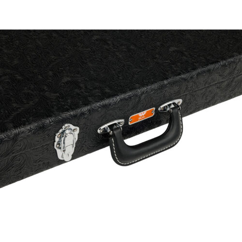 Pocos artistas pueden presumir de definir el sonido de un género, pero Waylon Jennings es el forajido indiscutible del outlaw country. Diseñado con el mismo espíritu rebelde que definió su sonido icónico, el estuche Waylon Jennings Tele® es un verdadero testimonio del estilo y la actitud del legendario músico. Bellamente envuelto en vinilo labrado al estilo vaquero, la construcción duradera de madera de 3 capas proporciona una protección duradera para tu guitarra mientras exuda un atractivo resistente y vanguardista que hará una declaración donde quiera que vayas. Abre el estuche y encontrarás un lujoso interior de felpa acrílica suave de color naranja que acunará tu guitarra con comodidad. Ya sea que estés de viaje o simplemente necesites un lugar seguro para guardar tu guitarra en casa, el estuche Waylon Jennings Telecaster lo tiene cubierto.