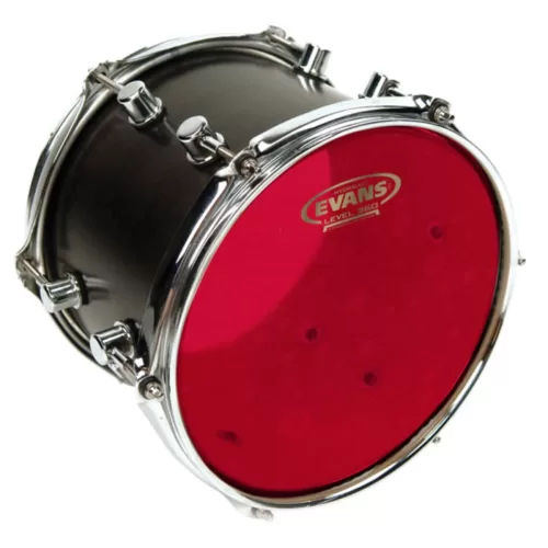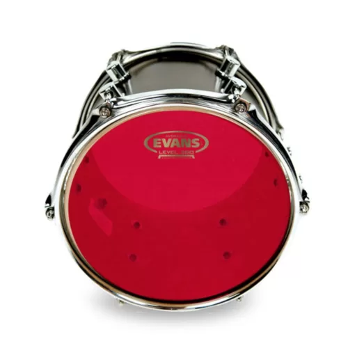 Evans ahora fabrica todos sus parches con el sistema Level 360º que con el diseño del aro del parche permite acomodar perfectamente la superficie del parche en el casco. Además, el diseño vertical de este aro asegura un contacto perfecto con el punto de apoyo en el casco, lo que da como resultado una afinación más fácil, con un tono más largo, más dinámica y como consecuencia una mejor sonido.