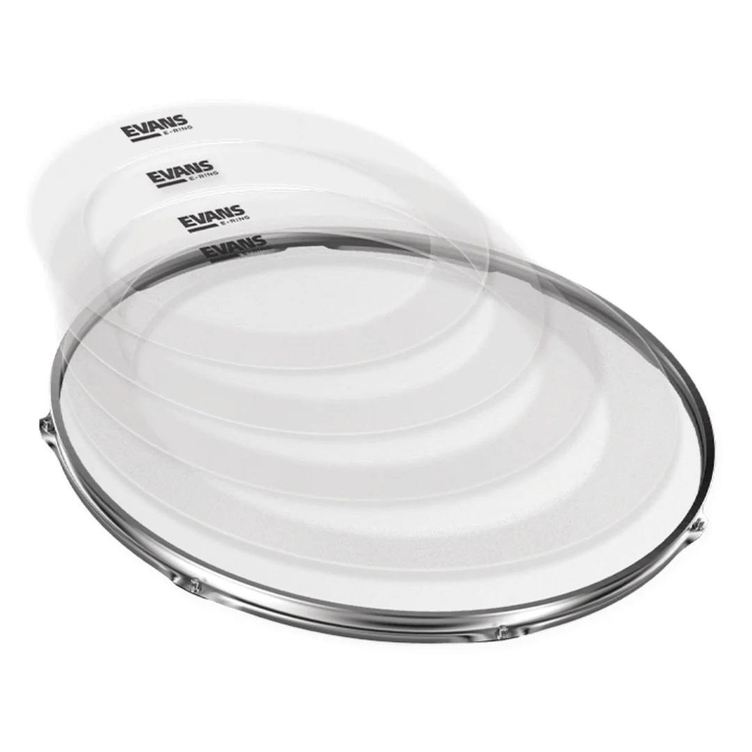 Los paquetes EVANS E-Ring contienen anillos de control de armónicos externos fáciles de usar que flotan en la superficie de un parche para eliminar armónicos y aplanar el sonido del parche, lo que permite una afinación más fácil.