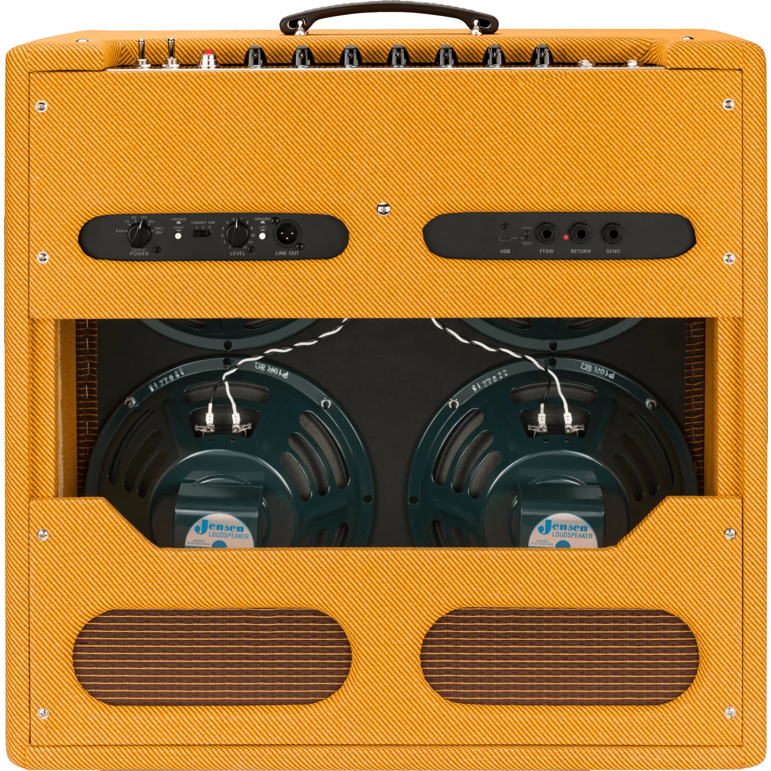 Esta notable tecnología de Fender se combina con el brillo y la sensibilidad táctil de cuatro altavoces Jensen P-10R, así como con adiciones centradas en® el reproductor como la reverberación de resorte de convolución, un interruptor vintage/ajustado para una respuesta de graves más suave y un bucle de efectos de modelo de postamplificador. Otras características incluyen un selector de potencia de salida para potencia máxima y cinco configuraciones atenuadas, salida de línea XLR de respuesta a impulsos (IR) para simulaciones detalladas del gabinete, interruptor de silencio y gabinete de pino liviano.