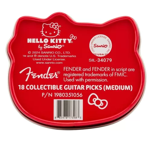 Con una lata de coleccionista con la forma de Hello Kitty, la lata Fender® x Hello Kitty® Pick contiene 18 púas de celuloide medianas impresas con los inconfundibles logotipos de ambas marcas. Las púas impresas presentan diseños personalizados de Hello Kitty en una forma tradicional 351 para un tono musical cálido y redondo. Con su estilo encantador y su reutilización, esta lata es tan funcional como llamativa.
