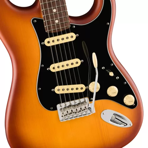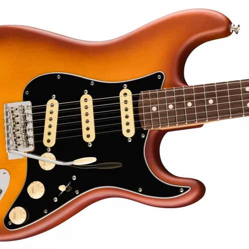 - Mástil en forma de “Modern C” con diapasón de 9,5″ de radio y 22 trastes jumbo
