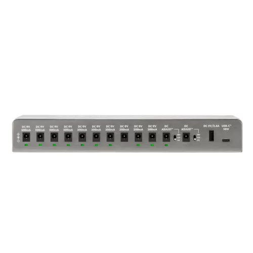 La Engine Room® LVL 12 está diseñada para satisfacer todas las exigencias de tu pedalera. Equipado con doce salidas de alimentación aisladas, diez de ellas proporcionan 9 voltios a 500 mA y dos salidas adicionales ofrecen voltaje conmutado (9v/12v/18v) mediante un selector de 3 posiciones o un conmutador deslizante. También incluye una salida IEC en la parte trasera, lo que te permite conectar una Engine Room® LVL5, LVL8 o incluso otra LVL12 para las configuraciones más extensas.