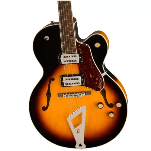- Fully hollow arched maple body for rich fullness, deep resonance and “big-body sound”