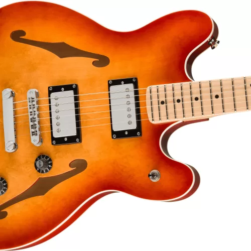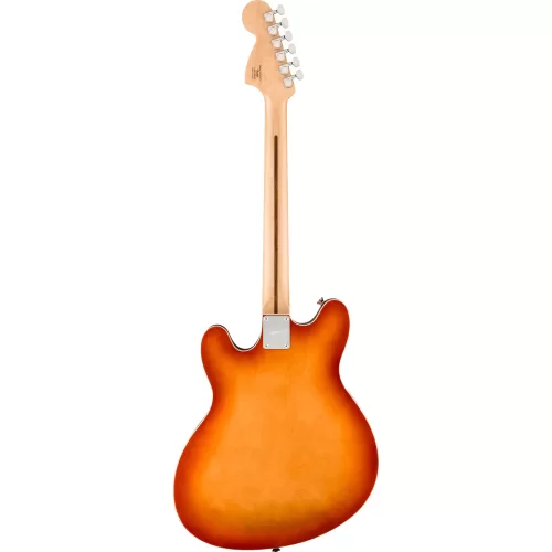 La Starcaster® rompió el molde del diseño de guitarras semihuecas con su forma de cuerpo desplazado cuando se introdujo en los años 70, ofreciendo un sonido versátil y un estilo fuera de este mundo para los/las guitarristas más aventureros. La Starcaster® Deluxe Serie Affinity™ cuenta con varios refinamientos fáciles de tocar, como un cuerpo semihueco ligero, un mástil delgado y cómodo en forma de “C” con el familiar clavijero Stratocaster®, un puente ajustable con cordal de tope para una sólida estabilidad de afinación y clavijas selladas de fundición a presión con ejes divididos para una afinación precisa y que facilita el cambio de cuerdas.