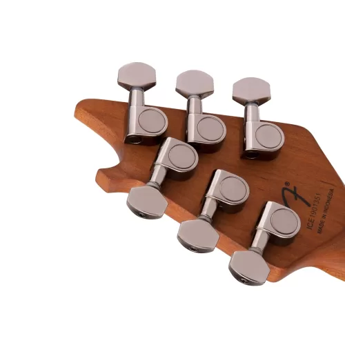 Diapasón de arce horneado con radio compuesto de 12” a 16”: el innovador diseño del diapasón de arce horneado con radio compuesto de 12” a 16” se aplana gradualmente hacia el talón desde su perfil más pequeño y redondeado en la cejuela para lograr acordes y riffs cómodos sin igual cerca de la cejuela y un bending uniforme cerca del talón. El arce es una madera densa que produce tonos brillantes y enérgicos, notas articuladas con mordida y un extremo bajo ajustado.