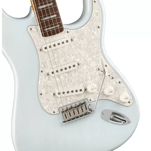 La Kenny Wayne Shepherd Stratocaster presenta un cuerpo de fresno con cámaras para un tono vibrante y resonante, mientras que el acabado de laca azul sónico transparente descolorido resalta la bonita veta de fresno. El mástil de arce en forma de “C” inspirado en los años 60 y el diapasón de palosanto con ribete, con un radio de 7.25 “, ofrecen la comodidad de la época dorada de Fender. Con tres pastillas personalizadas Kenny Wayne Shepherd, esta guitarra ofrece tonos Strat impactantes y densos.