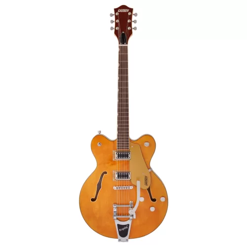 Elaborada minuciosamente con el sonido, el estilo y la facilidad de ejecución esenciales de Gretsch, el G5622T ahora viene en varios acabados notables, incluidos Imperial Stain, Orange Stain, Single Barrel Burst (NUEVO) y Speyside (NUEVO) con golpeador dorado y biseles de pastilla dorados, o en Aspen Green, Dark Cherry Metallic y Georgia Green con golpeador plateado y biseles de pastilla plateados. Todos los modelos cuentan con herrajes de níquel.