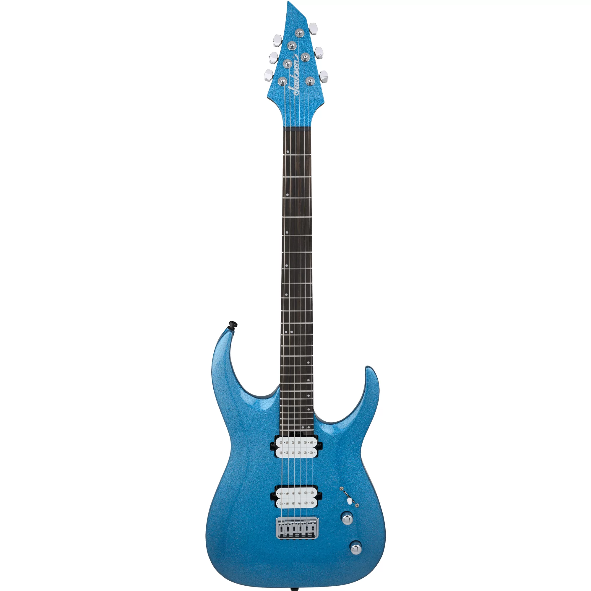 Disponible en Red Crystal o Blue Sparkle con un palo Jackson 3×3 AT-1 inverso a juego, este emblemático Pro Juggernaut también incorpora un puente rígido Jackson HT6 de cuerda a través del cuerpo, clavijas Jackson selladas de fundición a presión, bloqueos Dunlop® con doble cierre de correa y una bolsa para conciertos.