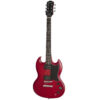 - Diapasón de arce de radio compuesto de 12″-16″ con 22 trastes jumbo e incrustaciones de puntos negros