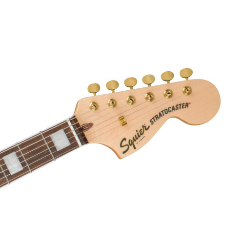 Los primeros instrumentos que llevaron el nombre de Squier se introdujeron en 1982, respondiendo a la demanda de diseños genuinos de Fender® a precios accesibles. La colección Squier 40th Anniversary celebra el viaje de 40 años de la marca de nivel de entrada de Fender con ediciones especiales de Telecaster® , Stratocaster®, Jazzmaster®, Precision Bass® y Jazz Bass®, todos disponibles en las variantes Gold Edition y Vintage Edition. La Squier® 40th Anniversary Stratocaster®, Gold Edition es un modelo elegante adornado con una llamativa colección de funciones exclusivas para los fanáticos exigentes de Squier. Con un llamativo hardware chapado en oro, un golpeador de aluminio anodizado en oro, un diapasón de laurel indio con incrustaciones de bloques perlados, una placa de mástil de aniversario grabada y un acabado brillante en todas partes, esta Strat® está preparada y lista para ser el centro de atención. Los refinamientos amigables para este modelo conmemorativo incluyen un perfil de mástil en forma de “C” delgado y cómodo para una sensación fácil de tocar, clavijas de estilo vintage y puente de trémolo sincronizado de 6 selletas para un rendimiento y estilo auténticos, y un solo-diseñado por Fender. Pastillas de bobina con imanes de alnico 5 para un tono de Stratocaster familiar.