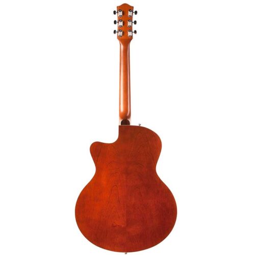 Hecho de Canadian Wild Cherry, el cuerpo de la 5th Avenue presenta una parte superior y trasera arqueadas moldeadas, así como un puente ajustable, orificios F clásicos, clavijero contorneado de alto brillo, golpeador flotante y ribetes color crema. Además, la belleza rústica de su acabado pulido personalizado crea un magnífico brillo satinado que recuerda al siglo XIX.