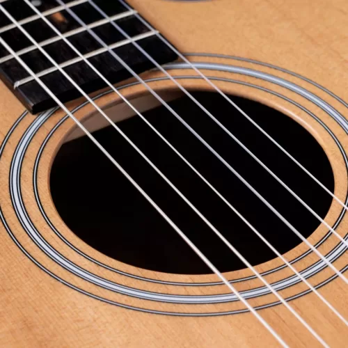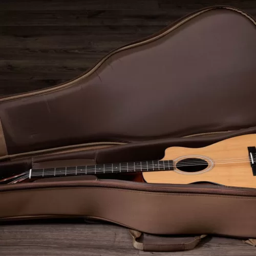 El 112ce-N es nuestro primer Grand Concert con cuerdas de nailon de la serie 100, que combina el sonido cálido y ágil de las cuerdas de nailon con una forma de cuerpo cómoda y compacta. Ofrece un valor excepcional para jugadores de todos los niveles. Con una tapa de abeto sólido y torrefacto combinada con fondo y aros de sapeli en capas, este acústico-eléctrico ofrece una voz clara y equilibrada, ideal para músicos de fingerstyle y rasgueos ligeros. Su mástil de 12 trastes y su anchura de cejuela de 1-7/8 pulgadas (más estrecho que el mástil de una guitarra clásica tradicional) hacen que sea fácil de tocar, especialmente para aquellos que hacen la transición de las guitarras de cuerdas de acero. Una arquitectura de voz especializada está diseñada para mejorar la calidez natural y la claridad de las cuerdas de nylon, proporcionando un tono bien equilibrado y sensible. Equipado con electrónica ES-N integrada, el 112ce-N ofrece un sonido amplificado fiable para entornos de estudio y actuaciones en escenarios. Su cuerpo con acabado mate presenta un ribete negro y una roseta de 3 anillos. El diapasón de ébano está incrustado con puntos de 4 mm en acrílico italiano y el clavijero ranurado está equipado con afinadores clásicos de níquel. Este modelo viene en una funda estructurada, que ofrece una protección ligera para los jugadores en movimiento. Es una gran opción para los músicos que anhelan la comodidad de una guitarra de cuerpo pequeño, la facilidad de ejecución característica de Taylor y los ricos sabores de nailon a un precio accesible.