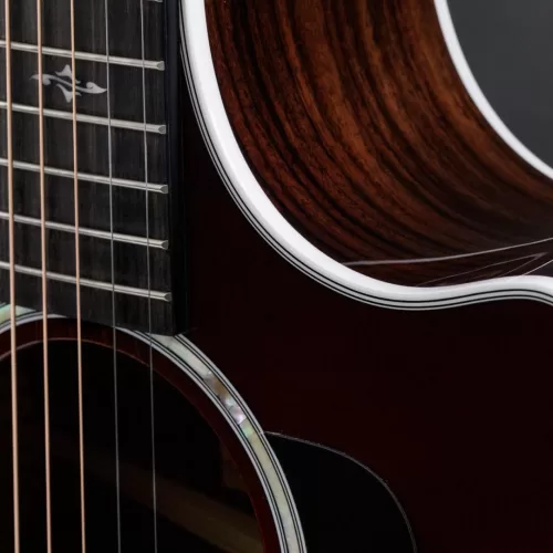 Nuestro Grand Auditorium de precio más bajo que cuenta con la combinación estelar de madera tonal de aros y fondo de palisandro indio macizo con una tapa de pícea de Sitka, el 414ce-R ofrece una combinación versátil de tono rico y adaptable, juego cómodo y estilo limpio. La 414ce-R, que genera una voz cálida con una fuerte presencia en los graves y una brillante gama de agudos, es la favorita de los instrumentistas por su utilidad similar al ejército suizo y su mástil fácil de tocar. Los detalles estéticos incluyen ribetes blancos, un golpeador de carey falso e incrustaciones Renaissance en el diapasón.