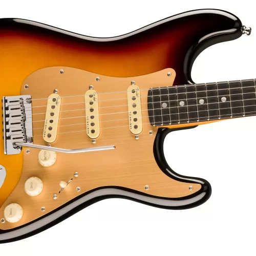 EI cuerpo resonante de aliso proporciona el característico sonido de Fender, mientras que eI talón del mástil con forma ergonómica permite un acceso excepcional a las notas más altas del diapasón. Los contomos traseros “1Jltra” son tan atractivos como prácticos.