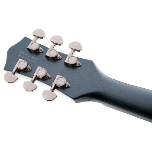 Vestido con elegantes acabados que incluyen Golddust, Gunmetal, Imperial Stain y Vintage White, el G2210 también presenta un puente envolvente compensado anclado, tuerca de hueso sintético, cuello encuadernado, perillas de control de estilo vintage, golpeador de tortuga y herrajes de níquel.