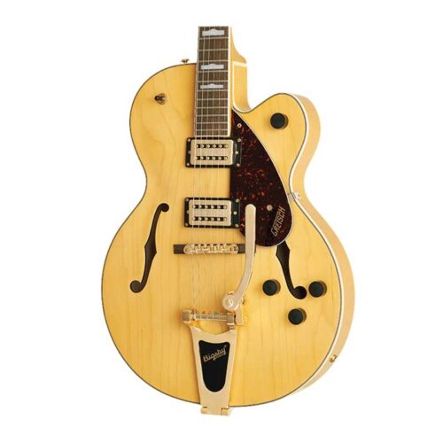 Grande, audaz y recto, el G2410TG Streamliner ™ Hollow Body Single-Cut con Bigsby® y Gold Hardware está diseñado para el guitarrista moderno que anhela algo más allá de la norma. Una guitarra imponente para músicos poderosos, el sonido moderno de la G2410TG, el cuerpo de arce más delgado, la electrónica actualizada y el estilo auténticamente elegante crean la última versión de That Great Gretsch® Sound! ™
