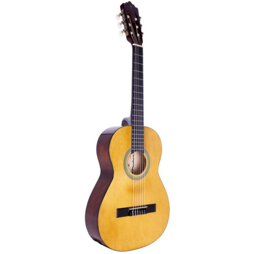 Esta es una guitarra clásica para principiantes de 3/4 con cuerdas de nylon la cual entrega un excelente sonido clásico a un gran precio. El modelo Amanda fue diseñado para los músicos principiantes en mente. Con el delgado perfil del mástil y el diapasón de los trastes anchos hacen el rasgueo muy fácil. También, sus cuerdas de Nylon son excelentes para estudiantes ya que la tensión en las cuerdas es significativamente más ligera que las cuerdas de acero regularmente usadas. Esto ayuda a los principiantes ya que es un poco más ligero en cuanto se trata de empezar a tener fuerza en los dedos y memoria muscular.