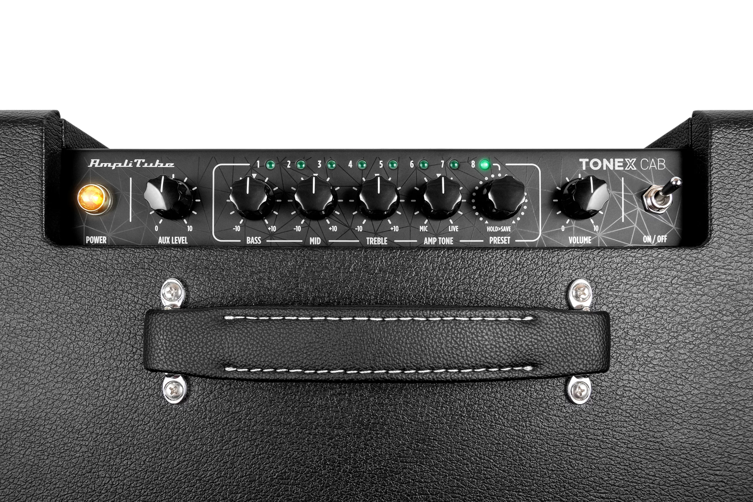 TONEX Cab ofrece simplicidad «plug and play» con funciones profesionales adicionales para equipamiento más complejo. Las características incluyen un ecualizador de 3 bandas para ajustar rápidamente tu tono a una sala específica sin tener que editar cada preset. Puedes programar los ocho espacios de memoria para almacenar los ajustes de ecualización y AMP TONE, además de la selección de IR de tu gabinete usando los controles integrados o el programa TONEX Cab que viene incluido. Utiliza el selector PRESET integrado para seleccionar fácilmente las memorias o a través de la Entrada/Salida MIDI incorporada.