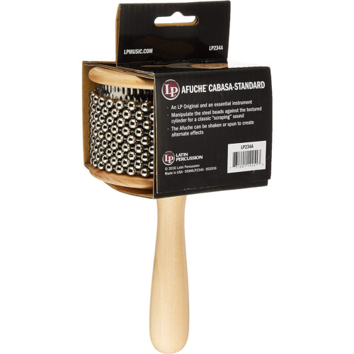 La tradicional Cabasa es una coctelera hecha originalmente de una calabaza hueca cubierta con una red de cuentas, o encadenada con pequeñas conchas. El Afuche/Cabasa de LP es un ingenioso diseño de mano. Cuenta con un lazo de cuentas de acero que rodean un cilindro texturizado para proporcionar una variedad de sonidos altamente articulados utilizados en patrones de agitador rítmico.