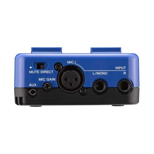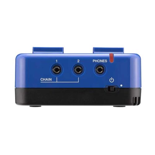-Conexiones: INPUT L/Mono, INPUT R (jack, Hi-Z), micrófono (XLR), auriculares, 2 x CHAIN (minijack de 4 polos para conectarla con otras SessionCakes), AUX (minijack estéreo).