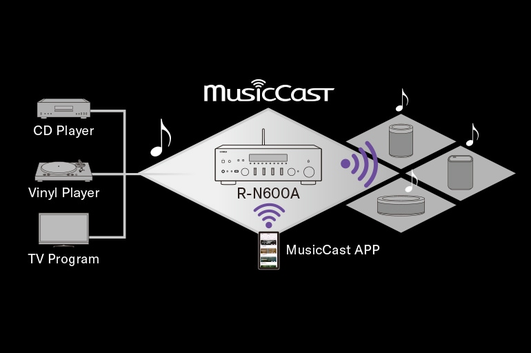 La Yamaha R-N600A hereda la tecnología Hi-Fi completa cultivada durante muchos años. La unidad también es compatible con MusicCast, lo que le brinda mayor libertad y flexibilidad auditiva.