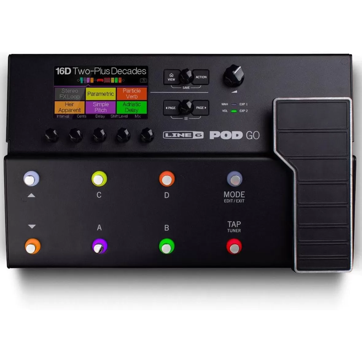 Con su sencilla interfaz plug-and-play, diseño ligero ultraportátil y los mejores tonos de su clase, el procesador de guitarra POD Go te lleva en el camino hacia el tono definitivo. Elija, edite y controle los sonidos utilizando la gran pantalla LCD a color, cinco codificadores push, ocho interruptores de pie resistentes y pedal de expresión multifunción de aluminio fundido, y agregue dos interruptores de pie externos o un segundo pedal de expresión para un control aún más en tiempo real. Todas las conexiones de audio esenciales también están al alcance de su mano, incluidas salidas estéreo equilibradas, un amplificador duplicado que se puede tocar antes de la cabina/IR, un bucle de efectos estéreo, un conector para auriculares e incluso un puerto USB para acceder a la interfaz de audio de 4 entradas/4 salidas con re-amplificación. Además de su amplificador, cabina y modelos de efectos de calidad profesional extraídos de la aclamada familia de procesadores de efectos HX, POD Go admite la carga IR de terceros y características sofisticadas como instantáneas le permiten acceder fácilmente a todos los tonos que necesitará para cubrir cada sección de cada canción. Con POD Go, no solo subirás al escenario, lo poseerás