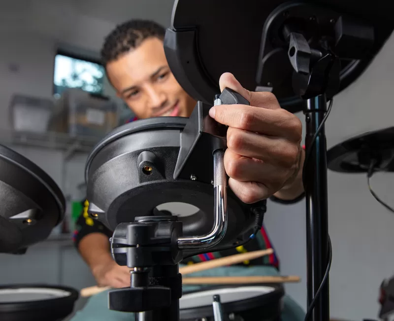 Cuando estás tocando con toda el alma, lo último que quieres es que un soporte baile o una percusión se te vaya alejando. Los herrajes de la TD-07KV están fabricados con materiales fuertes y componentes de calidad para proporcionarte la gran estabilidad que necesitas. El soporte a medida ofrece una base firme y sólida, mientras que las agarraderas de precisión mantienen todos los componentes en su posición. Haciendo honor a la gran resistencia que caracteriza a las V-Drums, la TD-07KV está lista para aguantar un uso intensivo, día sí y día también.