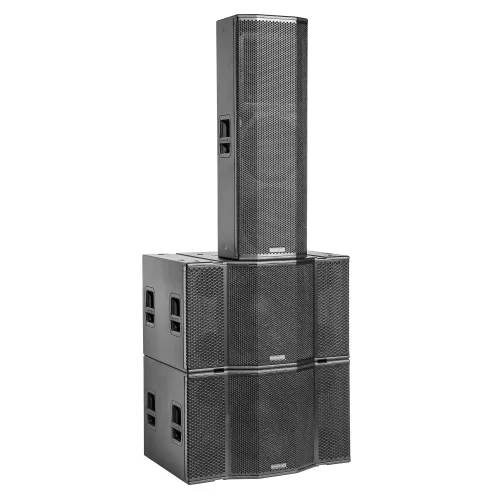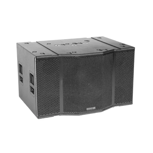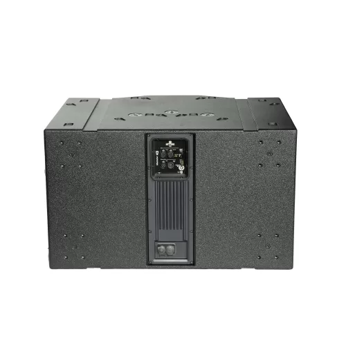 La parte superior activa de dos vías está equipada con dos woofers de 12″ (2,5″ V.C.) y un driver de compresión con una salida de 1,4″ con carga de bocina (3″ V.C.) que, con una cobertura de 100°x50° (HxV), garantiza un espectáculo auditivo sin igual.