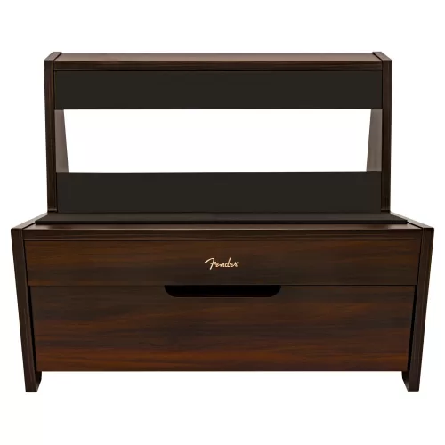 El soporte para amplifcador Fender Deluxe fabricado en madera se inspira en un diseño de mediados de siglo y es lo suficientemente resistente como para soportar el peso de los amplificadores combo de mayor tamaño. En su cajón integrado, los músicos pueden almacenar y tener perfectamente organizados sus principales accesorios, como por ejemplo los pedales de efectos, los cables o las fuentes de alimentación.