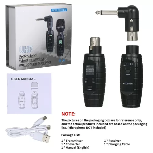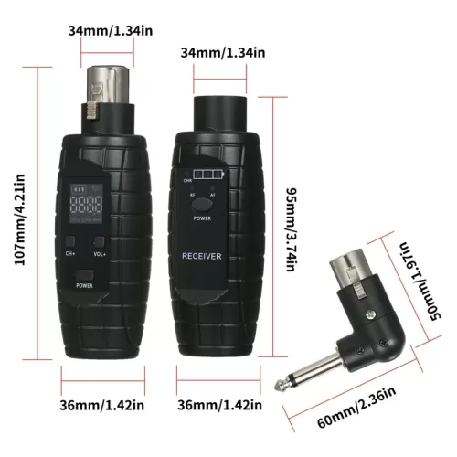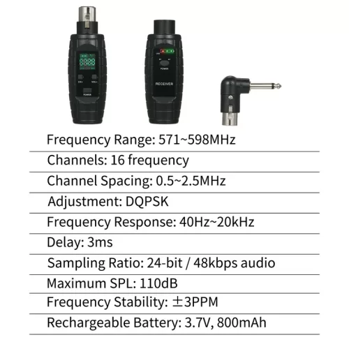- Equipado con un enchufe XLR a 6,35 para el receptor: puede ser utilizado en el altavoz, mezclador, amplificador, guitarra y otros equipos de sonido.